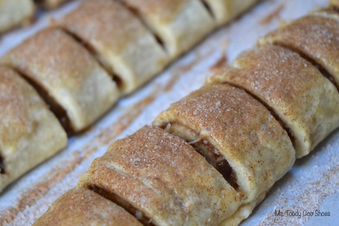 Carefully transfer cooled logs to cutting board, and slice rugelach into individual pieces.